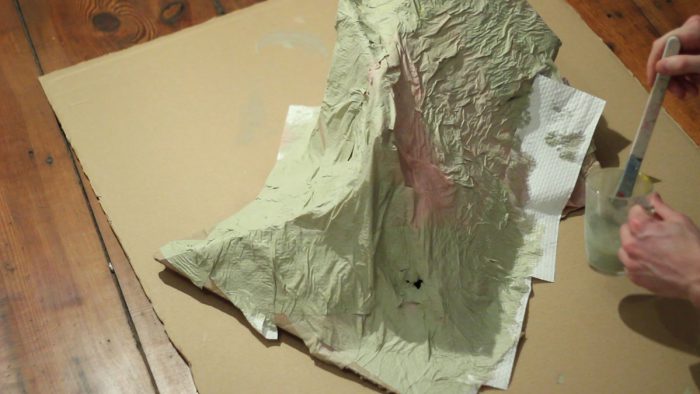 I wanted to have my background rocky and dry. This will emphasize the atmosphere of the wasteland. I have used cardboard for the foundations. I have made all of the structures with simple cardboard shapes. Entire construction I have covered with toilet paper, painted with dissolved in the water glue for wood with a bit of acrylic color.